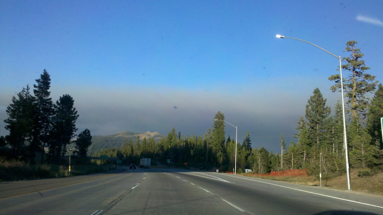 Though the Rim fire burns hundreds of miles away, a thick, purple cloud of smoke lay like a blanket over Lake Tahoe as we drove over Donner Pass on Friday evening, the final weekend adventure before back-to-school. On Saturday morning, we woke at dawn to air thick with the soot and the smell of it, the lake barely visible, the sun bleeding red in the sky.